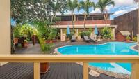 Our Two Bedroom Apartments offer 76sqm of spacious, open-plan living with pool views, a covered balcony with a six-seater outdoor dining set, and a fully equipped self-catering kitchen, comfortably sleeping up to five guests. Each apartment includes air-conditioning, ceiling fans, insect screens, super-king beds (configurable into singles), a spa-bath bathroom, and convenient in-room features such as a TV, safe, phone, ironing facilities, and essential appliances for a relaxed and comfortable stay.
