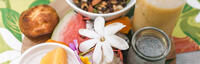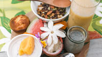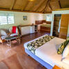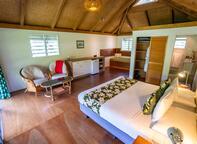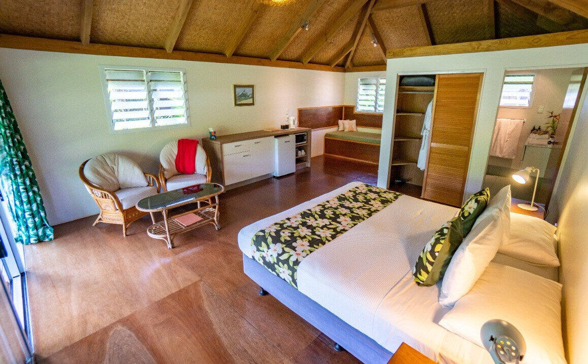 Styled with true Polynesia in mind with cooling high ceilings and woven materials, our 2 Tropical Are (Polynesian style studio room) command relaxation. Each Are boasts a private deck facing the stunning mountains of Takitumu, and overlooking a traditional pawpaw plantation. Relax on the indoor daybed while you enjoy a cup of Cook Islands artisan coffee or a cooling local craft brew beer. Ideal for a romantic getaway for two.