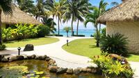 The Manutai (sea bird) Villas invite relaxation within steps of the ocean. Their airy living areas, covered balcony and bedrooms are adorned with Pacific artworks among comfortable boutique furnishings to provide a stylish oasis built for beachside relaxation. Equipped with air conditioning, large bathroom and a complete kitchenette, the Manutai villas are a modern beachfront offering within the natural beauty of the South Pacific. Perched on the foot of the lagoon, guests can unwind while taking in the white sand beach and peaceful waters that stretch out in front of them.