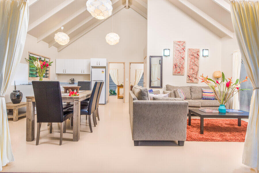 Muri Lagoon Villa consists of a two bedroom villa, offering a fully equipped kitchen, two bathrooms, modern amenities, tea & coffee making facilities, TV system, laundry facilities, and BBQ facilities.