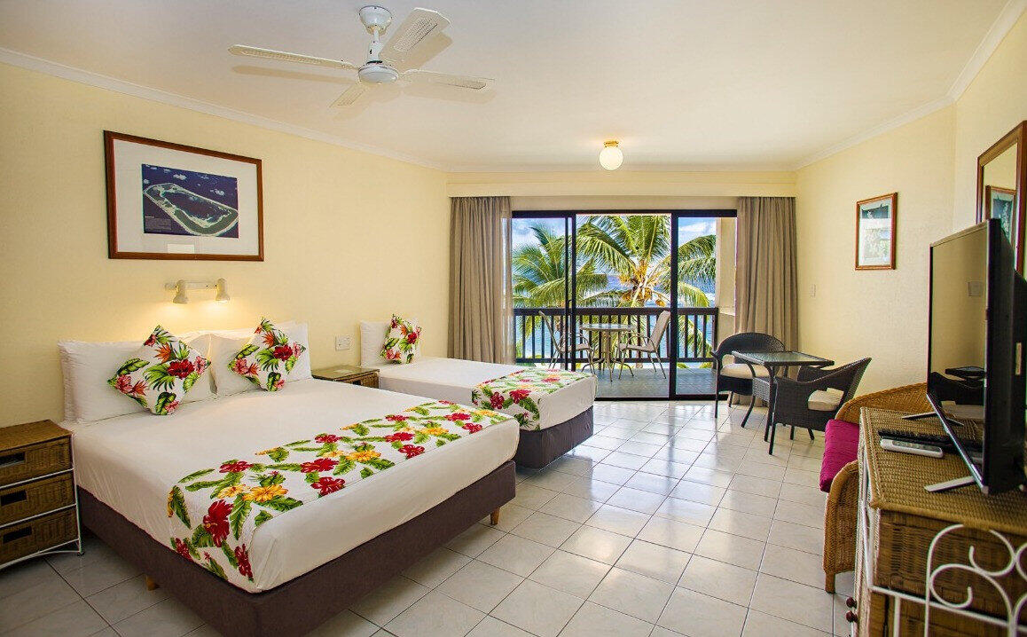Relax on the outdoor sand deck and enjoy stunning views over the clear waters of Rarotonga’s west coast, where the sunsets are as unforgettable as the resort itself. Guests can enjoy a complimentary tropical breakfast each morning, with the option of room service, plus a choice of dining venues, bar, and daily entertainment and activities for all ages.