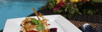 Room Description:The 7 Garden Studio bungalows are situated around the swimming pool, in amongst flowering foliage. The interiors have tiled floors, bamboo-ply ceilings, and modern furnishings. These bungalows cater to a maximum of 3 people and children under age 6 stay for free. Bungalow amenities include: full kitchen (fridge/freezer, gas cooktop, microwave, kettle, toaster, crockery/cutlery), bathroom with shower, premium superking bed, airconditioning, ceiling fan, flatscreen TV, stereo/mp3 player, telephone, room safe, and private patio.
