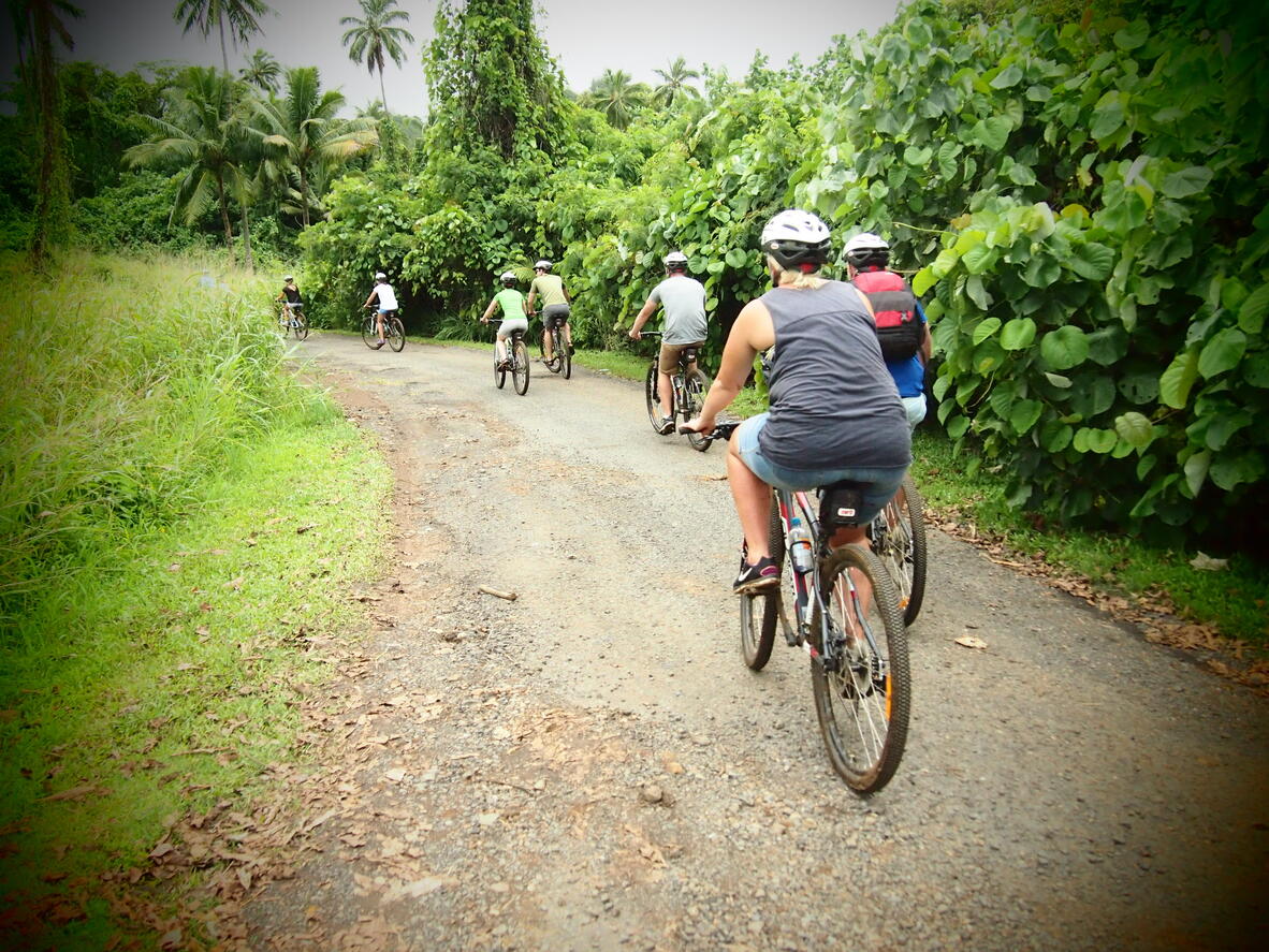 The ‘Discover’bicycle tour takes you along the Ancient Coral Road –Ara Metua - commonly referred to as ‘the back road’. Cycle along the inland roads and enjoy the beautiful scenery and tranquil pace of local village life. We cycle at an easy pace allowing plenty of time for you to enjoy your surroundings, taste fresh produce, learn about island life, and even husk a coconut! This basic level cycling tour provides a way for you to discover the real Rarotonga with honest, interesting and amusing stories from a passionate tour guide - your 'storyteller'. The ride is predominantly on level to gently sloping terrain covering a distance of around 8 –12 kilometres on mainly sealed roads. The Discover tour finishes with a delicious local lunch. This tour comfortably caters for those of a basic fitness level and limited riding experience. This tour is a favourite for families and those that do not ride their bike much…or have not ridden a bike for decades in some cases!