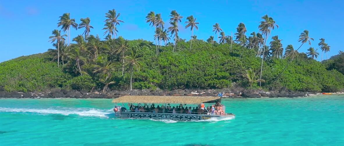 A fantastic day out with Koka Lagoon Cruises exploring Muri Lagoon. Snorkelling amongst the lagoon life or enjoy through the glass bottom; non-stop entertainment by the friendly talented crew with ukulele playing, pareu tying, weaving; enjoy a delicious bbq feast on Koromiri islet, amazing coconut tree climbing show, coconut husking and more; informative, educational, and most of all fun for all ages. A portion of every ticket also goes to a marine conservation fund.