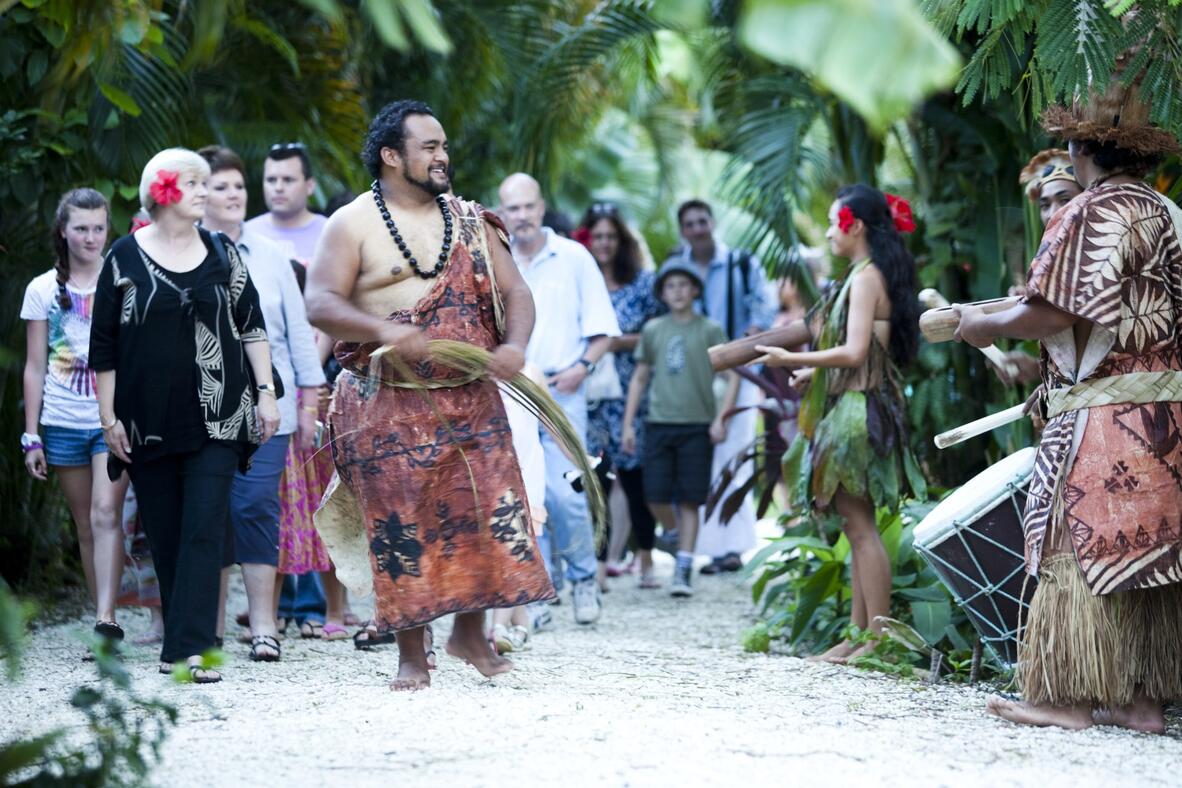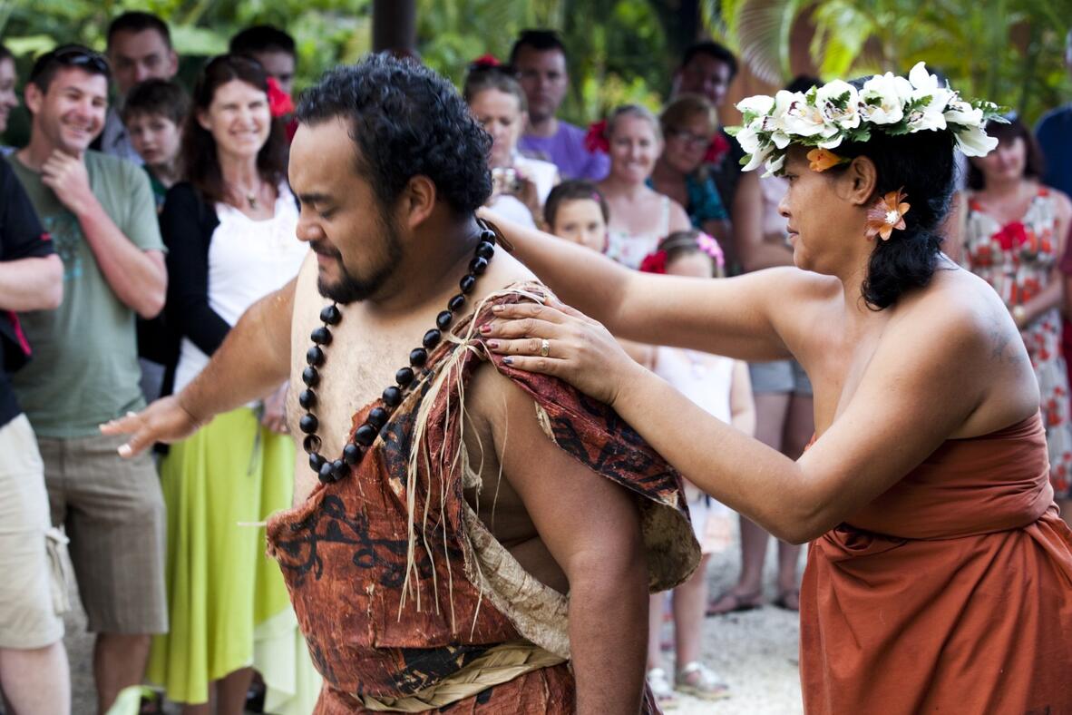 Learn about Cook Islands history, traditional medicines, ancestral navigational techniques, legends and more while local artisans and craftspeople demonstrate how we weave, carve and prepare our dance costumes past and present. The Cultural Village Tour is an Interactive and educational Experience where you can immerse yourself in the powerful story of our Cook Islands Maori culture. Your Cook Islands cultural experience includes learning about our Polynesian history, traditional medicine preparation, ancestral fishing and navigation techniques, legends and beliefs. Local artisans and craftspeople will show you how we carve, weave, prepare our local dance costumes and cook our traditional foods and you will visit a Marae (sacred enclosure for religious ceremonies) and more.