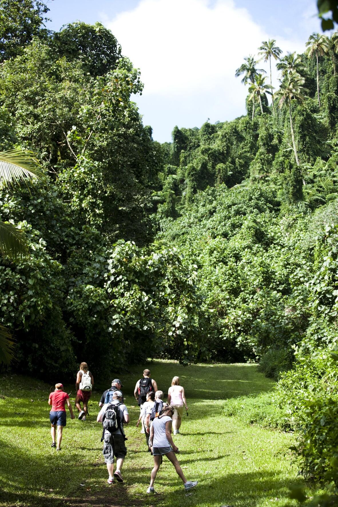 An exhilarating walk through tree covered jungle. Start with a 400 metre climb. In a few places it's like climbing a ladder. Hold onto natures well placed roots. Keep to the inside of the track. At the base of the Needle breathtaking views can be seen from one side of the island to the other. A wide chasm, volcanic heart of the island looks across to the mountain Te Kou. Ancient carvings are visible. Cross the stream 5 times going down to Wigmore's water fall. During the wet season the river can be fast flowing. Our informative guides will share the history, flora and fauna of the area.