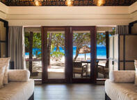 The Family Beach Bure sleeps up to 10 guests and is two interconnecting Beach Bures. Located on the north facing beach front, this free standing bure features three bedrooms and twoi bathrooms. With a traditional thatched roof, high vaulted hand painted ‘tapa’lined ceilings and a distinct Fijian decor, the bure is spacious and will feel like your home away from home. Enjoy the water views from the patio and step straight onto the powdery white sand of the beach and foreshore.
