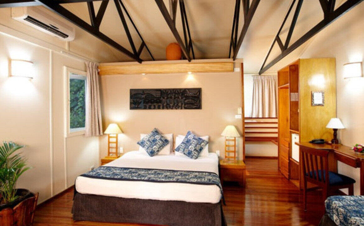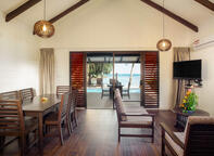 Ocean Spa Bures are all duplex configuration plantation-style design. They are built of solid timber with polished timber floors, high ceilings, and private screened verandah. No television in the bures.