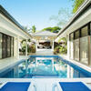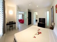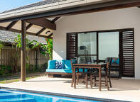 These Villas have 3 bedrooms with each bedroom having a private bathroom, with the master room containing an outdoor showers. The master bedroom has a spa bath. Each Villa has its own private tropical garden courtyard with a swimming pool and spa, BBQ patio and large covered verandah for exclusive use of Villa guests.