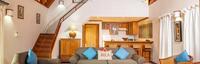 These Villas have 3 bedrooms with 2 of the bedrooms having a private bathroom. There is a full kitchen with a 6 seat dining table inside and also on the spacious veranda.