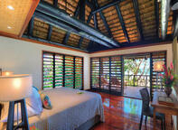 With 2 bedrooms and 2 bathrooms these bures offer ultimate privacy for parents traveling with children, or 2 separate areas for 2 couples traveling together. With a large deck , chaise lounges and a hammock, these bures offer magnificent views of Savusavu Bay. The master bedroom has a luxurious king bed and a daybed, while the second bedroom has the option of a king bed or two single beds.