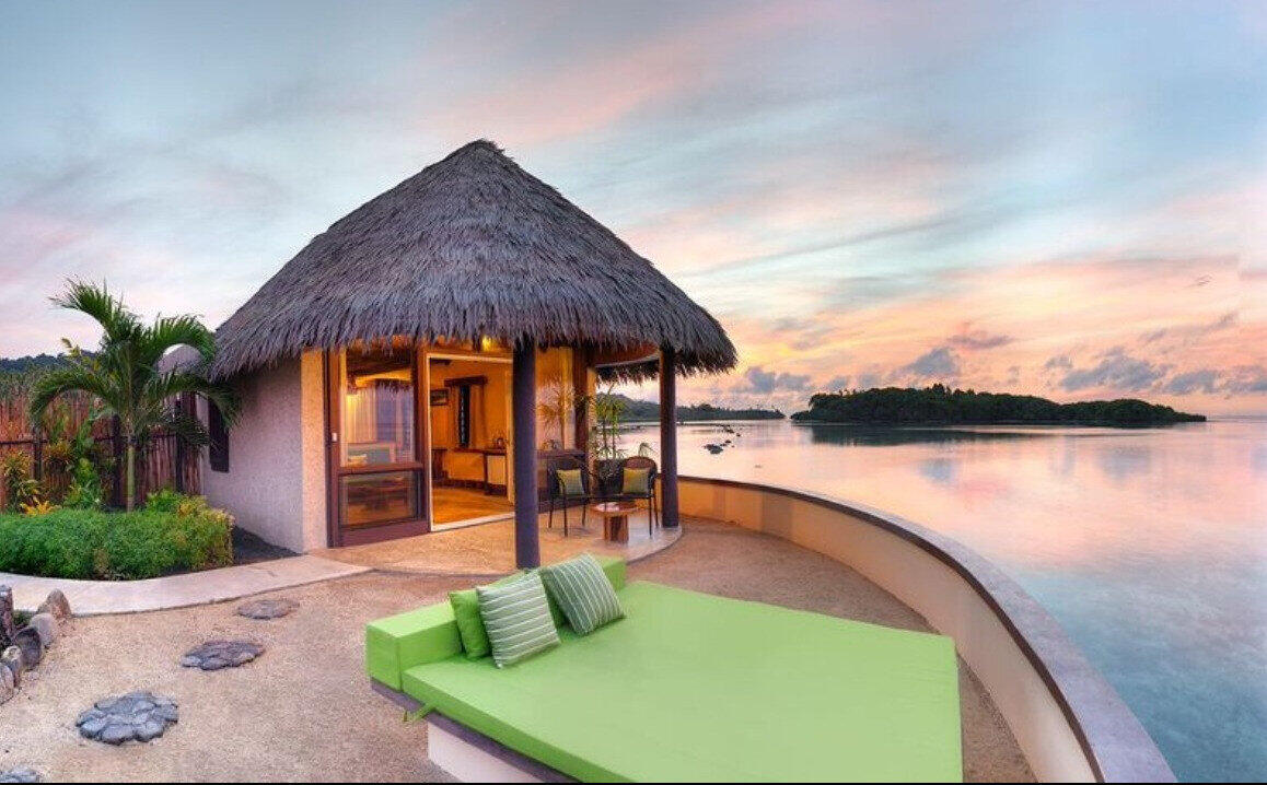 The Edgewater Bures were built with romance in mind, offering the perfect addition to Luxury in our Edgewater Lagoon. The bures offer a traditional Fijian style with tropical thatched roofs, and a private porch elevated above the ocean below. Each porch offers a private beach area with a ladder that leads directly into the blue lagoon. These bures offer spacious bathrooms with his and her vanities, King sized romantic beds, and expansive views of the lagoon from the tropical lounge area and master bedroom. The Edgewater Bures offer the best value for guests seeking a waterfront experience in beautiful Fiji.