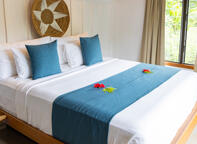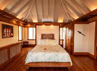 The Garden bures are surrounded by lush tropical gardens with a white picket fenced veranda. These bures are spacious with one king bed, bamboo canopy frame, palm wood furniture, complete with romantic stone shower. Your bure includes a private walled courtyard in back, and are perfect for a couple. Air Conditioned.