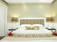 Two are 100sqm (1076sqft) with a 20sqm (215sqft) verandah located in a two story bure. They each comprise 2 bedrooms, each with a King sized bed, one ensuite and one main bathroom accessible from the living area, and 3 single beds also located in the spacious living area. The other two bures are 92sqm (990sqft) in size comprising 2 bedrooms - each with a King sized bed and an ensuite bathroom, and 3 single beds, plus a spacious 18.75sqm verandah (202sqft). All bures are air-conditioned with ceiling fans, fridge, and plunger coffee and tea making facilities. There are four family bures at Malolo which can sleep up to 7 people.