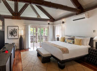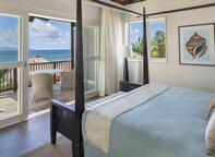 Enjoy partial ocean and garden views from this couples suite located top floor of a duplex villa. This suite is 60sqm of indoor living space with a vaulted ceiling and traditional Fijian architecture and decor. A spacious living room with a plush sofa and a dining table, spacious bathrooms feature double vanities, showers built for two and a separate tub feature. On the balcony is a daybed and comfortable lounge seating for two to enjoy evening cocktails watching the Fijian sunset.