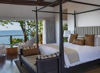 Absolute beachfront with panoramic ocean views! The generous interior highlight traditional Fijian design with relaxed contemporary finishes. A spacious king bedroom, which features a 4-poster bed and a separate en suite bathroom leading to a private spa bath room and outdoor shower. This spa villa is spacious enough to add two extra single beds and a cot for families who need to sleep under one roof at ground level. This stand alone, thatched Fijian villa comes complete with its own private garden courtyard, hot tub and direct beach access.