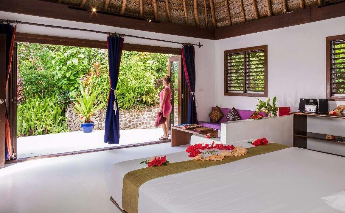 Five luxurious Beachfront Bures are scattered along an unforgettable bay of pure white sand overlooking a vibrant turquoise lagoon and a pair of verdant neighbouring islands. Each Bures boasts a spacious, open plan, light filled Mediterranean interior. With immaculate whitewashed walls embellished by colourful Asian accents, a king-size bed and two built-in sofas, each pristine Bure is topped by uniquely Fijian Roofs, eight meters high and built by local craftsmen using sacred NokoNoko timbers.