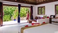 The Garden Bures are nestled admist the palm trees and only a few steps from the bay of pure white sand overlooking a vibrant turquoise lagoon and a pair of verdant neighbouring islands. Each of the Bures are spacious, open plan, with immaculate whitewashed walls embellished by colourful Asian accents, a king-size bed and two built-in sofas, each pristine Bure is topped by uniquely Fijian Roofs, eight meters high and built by local craftsmen using sacred NokoNoko timbers.