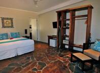 This room has a balcony with outdoor furniture, situated in tropical gardens with an open aired ensuite. Enjoy the hand crafted local furnishings, air conditioning and tea and coffee. Includes daily complimentary bottled water, TV, complimentary in room wifi, fridge, and a room safe. As in a duplex design, these rooms are not suitable for children under 5 years.