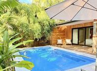 Located in the "The Cove" featuring 2 pools & a bar area, You will find yourself cocooned in the tropical Garden setting with plenty of day beds - Cabana's and personalised pool service from our "Bar in a Boat". Tropical open aired bathroom, beach towels, ceiling fans & air conditioning.