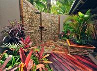 The 2 bedroom Garden Villas are set only a few feet behind the beachfront villas, positioned to allow gentle sea breezes, with island or ocean views, and easy access to the ocean. Featuring an outdoor bathroom where you can gaze up at the stars while you shower, the villas are air-conditioned, have a large deck, and outdoor living space. They are generous in size, and are also designed to suit larger families. These villas have 1 and 1/2 bathrooms, with the 2nd bedroom having its own private toilet and separate external access.