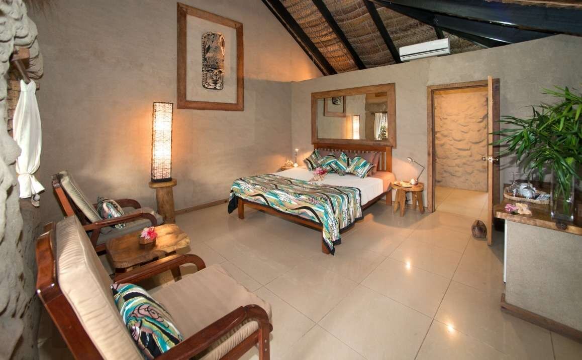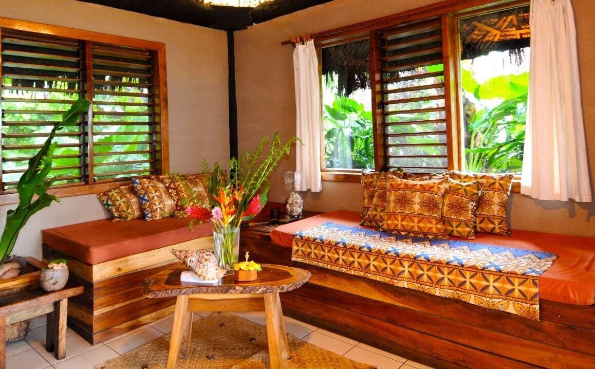 The Oceanview Buresoffer a king bed, with lounge room, indoor bathroom with shower, as well as an outdoor shower in the private, tropical garden. There is also a sundeck complete with Fijian day bed/