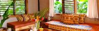 The Oceanview Family Bures accommodates two guets in a king bed in the first room and another two people in either a king or 2 single beds in the second room. There is an indoor and outdoor lounge room, indoor bathroom with shower, as well as an outdoor shower located in the private, tropical garden. These bures also boast a generour sundeck featuring a comfortable Fijian day bed.