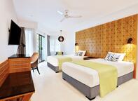Deluxe Courtyard Twin rooms are on the ground floor, with sliding doors onto your patio beside the resort gardens. With an average size of 41m2, they feature a television, in room safe, coffee and tea making facilities, mini bar, bath amenities, bathrobes, hair fryer, walk in shower, patio, and free WiFi.