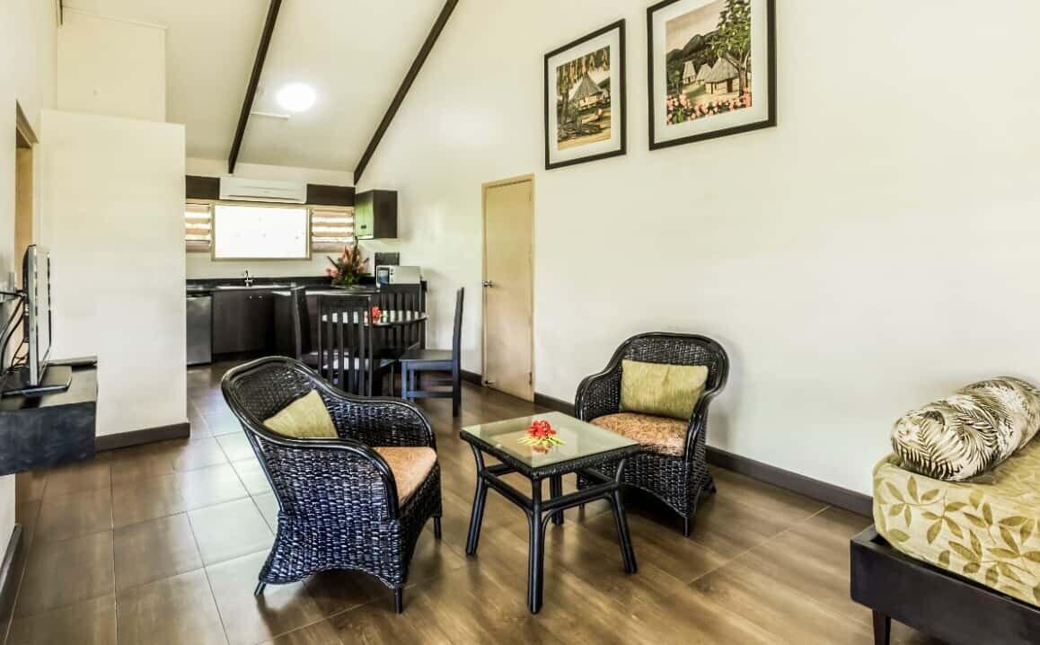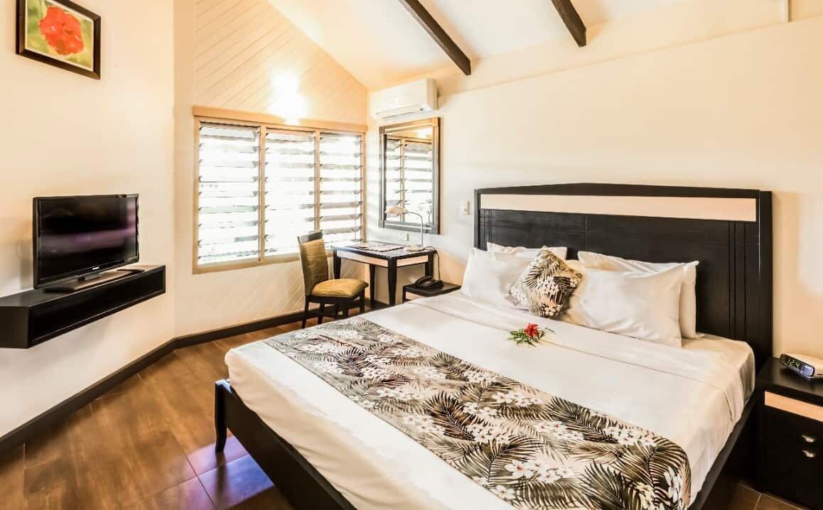 Located directly opposite the Nadi International Airport amidst tropical landscaped gardens, this airport resort hotel offers a range of accommodation from studio rooms, family villas, 1 bedroom villas and suites.