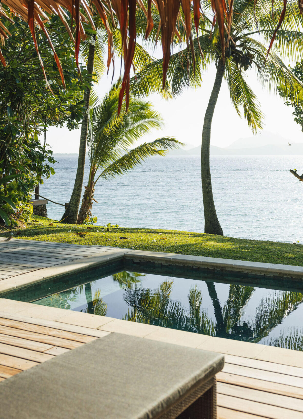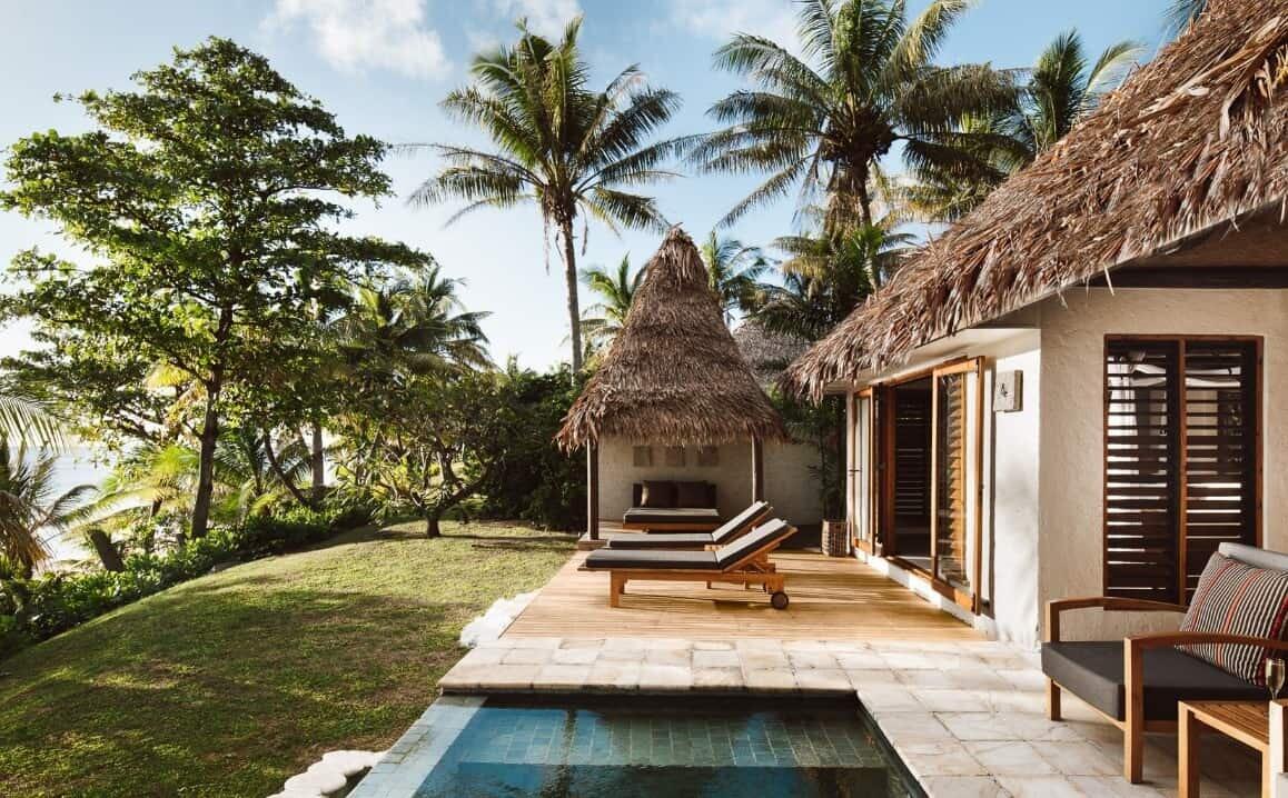 Perfect for couples and honeymooners, the 18 Beachfront Pool Bures offer a 60sqm freestanding, air-conditioned accommodation furnished in a fusion of contemporary style with Fijian design, including an outdoor tropical shower under the stars. Double foldout doors deliver amazing tropical sunsets and ocean views from your bure, hammock or 63sqm deck with a stunning 3.5m x 2.5m personal pool enveloped by lush tropical gardens.