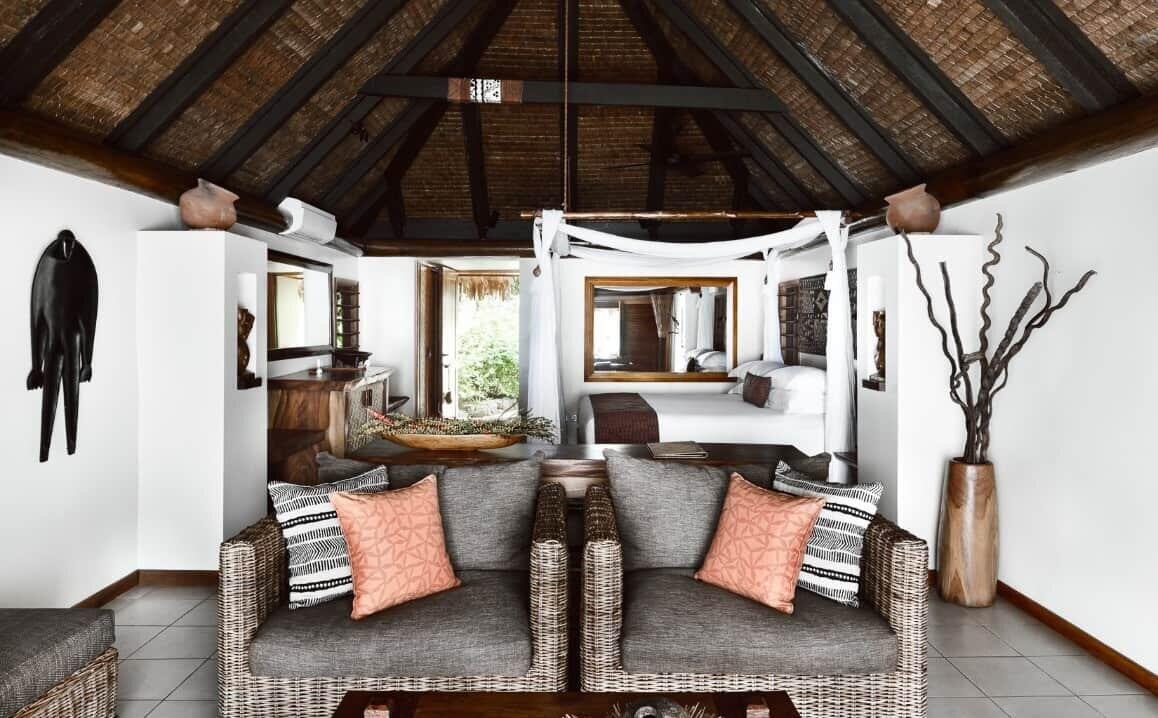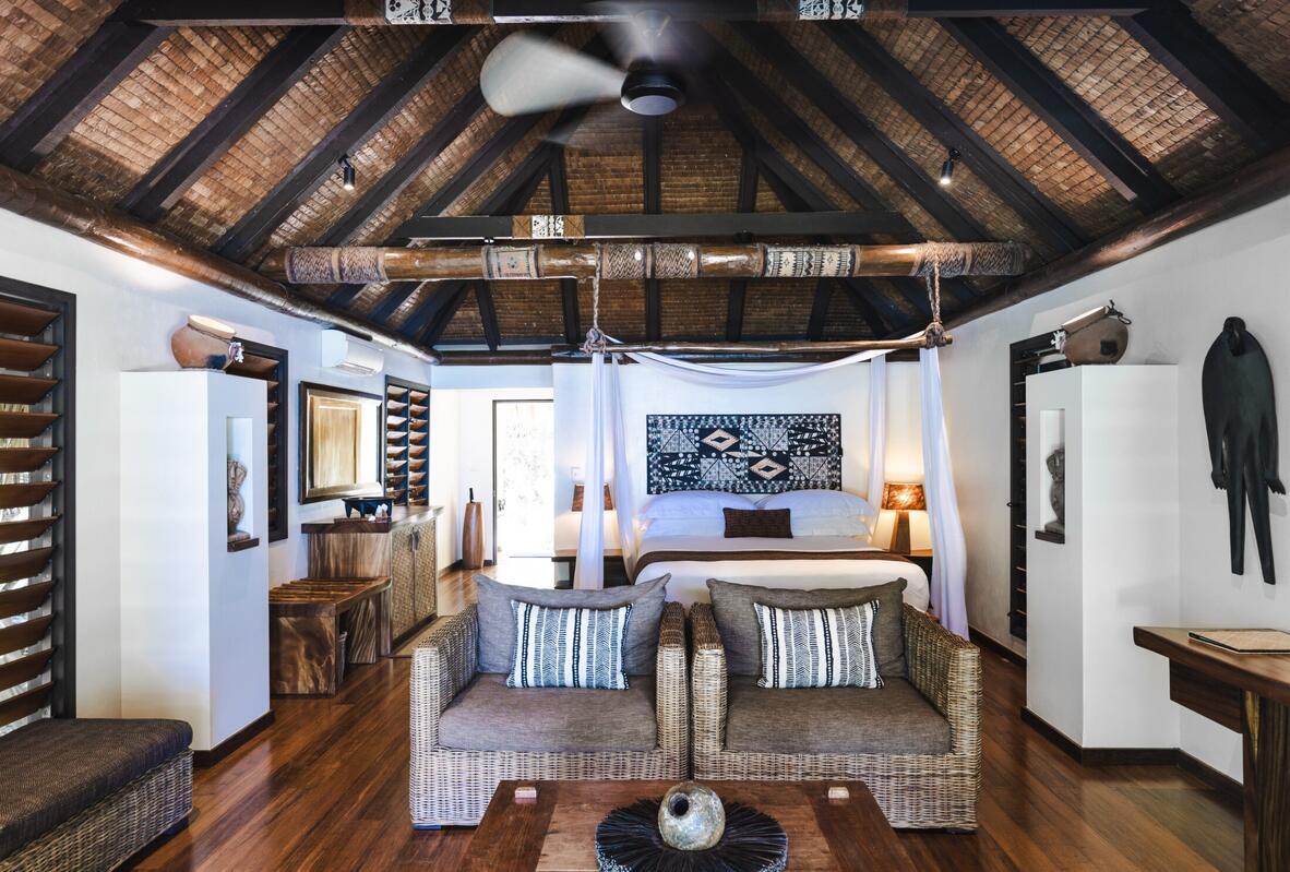 The ultimate couples escape featuring an expansive 70sqm deck with a stunning 3.5m x 2.5m infinity edge personal pool, a couples massage bure, sunloungers and hammock by the beachside to relax and enjoy the most amazing tropical sunsets. Both the separate living area and bedroom feature air-conditioning, double fold-out doors that seamlessly extend the living space. The 120sqm freestanding Villa and includes an outdoor tropical shower under the stars offering a feeling of spaciousness with a touch of Fijian style. By design our Villas are without telephones & televisions.