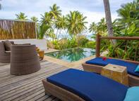 Our Beachfront Bures with plunge pools are located only metres from the water and are surrounded by lush tropical gardens. Perfect for honeymooners and couples, the bures are both spacious and stylishly appointed. Enjoy spectacular sunsets from your private balcony or sip champagne whilst lounging by your personal plunge pool. Complete with indoor bathrooms with double vanities and a stunning river rock outdoor shower, these rooms are designed to provide the ultimate luxury experience.