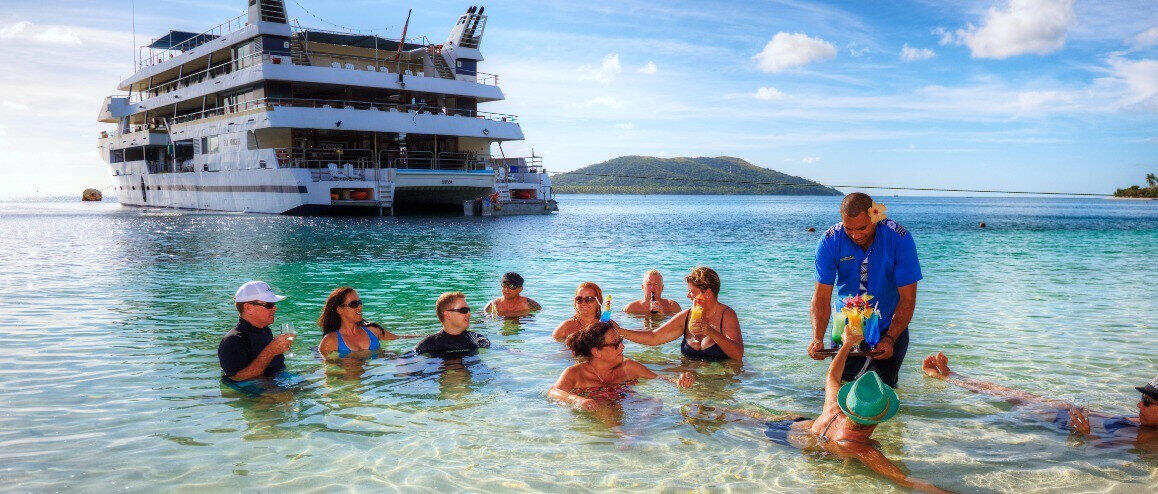 Book Ahead & Save: Return Flights + FREE Transfers + ALL Meals Onboard + Guided Shore Excursions + BONUS Malamala Beach Club Day Pass with FJ$50 credit – SAVE up to $695 per person!
