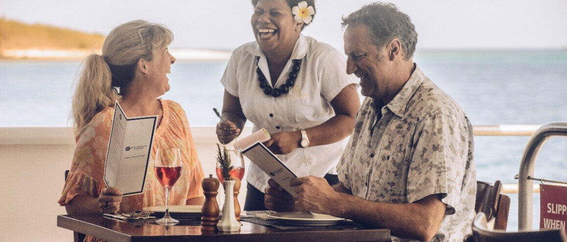 Book Ahead & Save: Return Flights + FREE Transfers + ALL Meals Onboard + Guided Shore Excursions + Bubbles for Breakfast + BONUS Malamala Beach Club Day Pass with FJ$50 credit– SAVE up to $1095 per person!