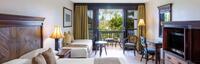 These adult only Studio Villas are comfortable, indulgent and inviting, making ti ideal for couples seeking seclusion and embellished ambience. The newly enhanced lodging is fitted with one king-size bed and features a spacious, furnished balcony or patio. Further touches include VIP bath amenities, bathrobes and slippers, a charming minibar fridge, television, iron and ironing board, and fruit basket and sparkling wine in the room upon arrival.