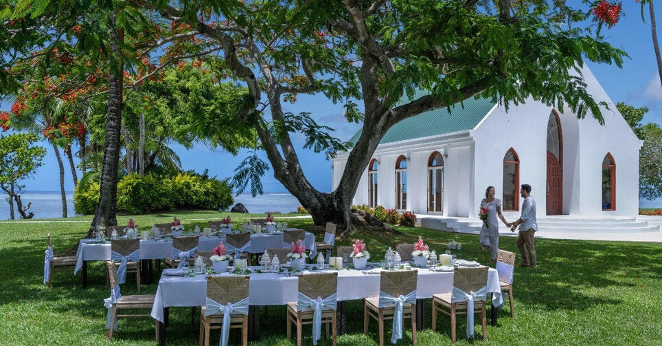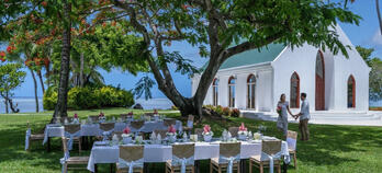 A wedding package full of meaningful moments including romantic dinner for two, exclusive chapel hire, ceremony for up to 30 guests, Fijian village choir, an engraved plaque, wedding cake and more.