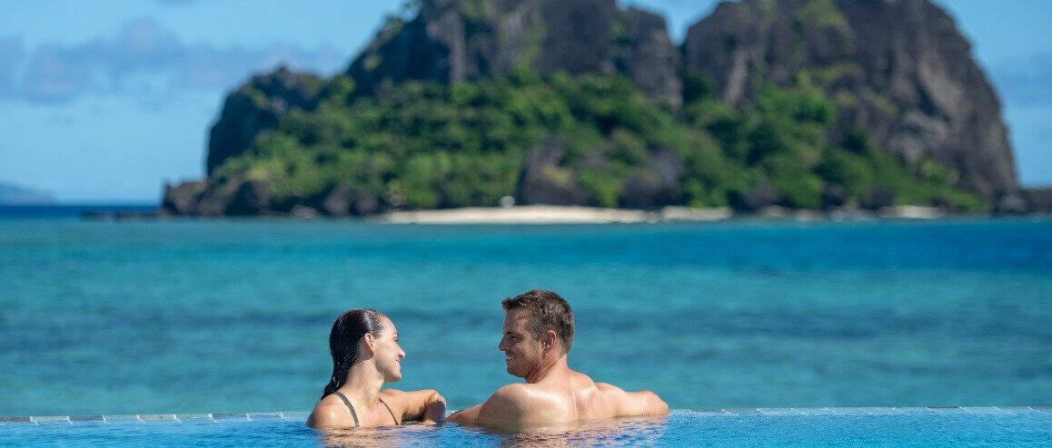 Renew your vows in the luxurious surroundings of Vomo Island Resort Romance including tropical garlands, French champagne and a romantic beachfront dinner for two.
