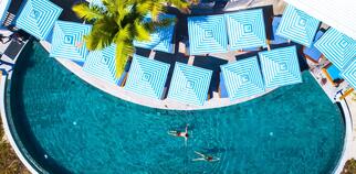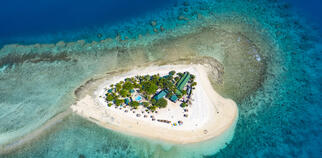 Fiji's first and original two level floating platform surrounded by turquoise blue wate and picturesque views with an internally