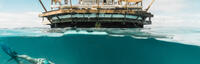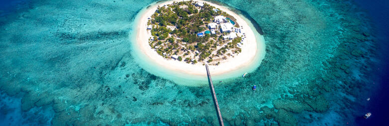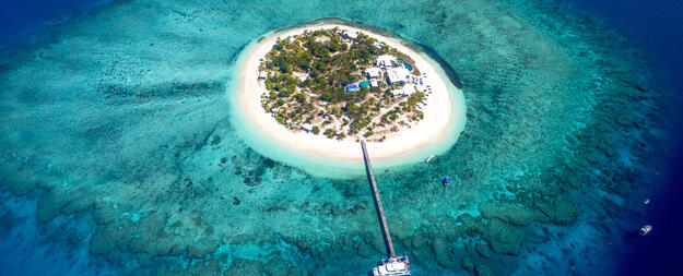 Fiji's first and original two level floating platform surrounded by turquoise blue wate and picturesque views with an internally