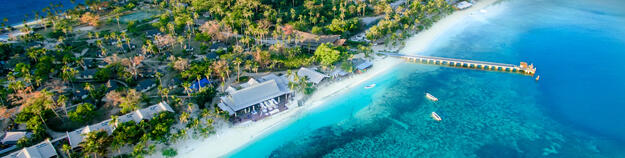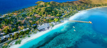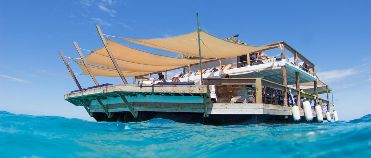 Fiji's first and original two level floating platform surrounded by turquoise blue wate and picturesque views with an internally