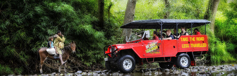 Whiz past cane fields, through mud pools (seasonal and subject to rain), mountain plateaus and winding tracks on your ATV. After dropping off your ATV, you will head out to Zip Fiji where you will experience 16 lines over 5kms. You will fly across caves, canyons, mountaintops and rainforest. This is a full day tour of action packed adventure.