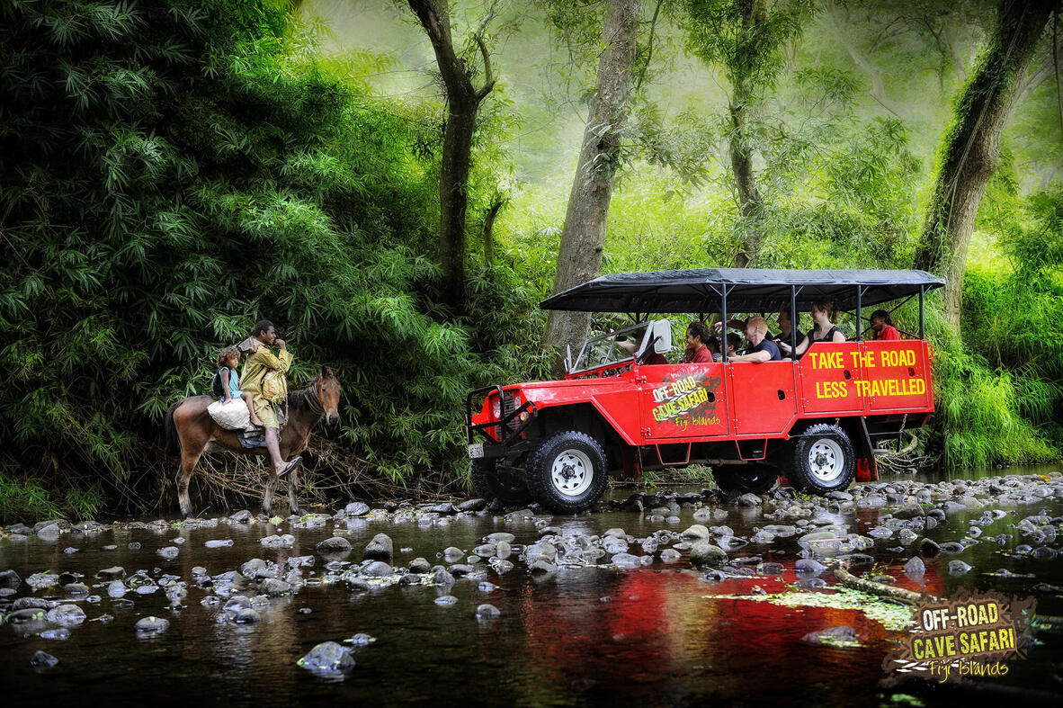 Fiji's original Off-Road Cave Safari offers a half day Fijian adventure, for those who wish to take the ‘Road Less Travelled’. Transporting you comfortably aboard a custom built, all-terrain vehicle into the Fiji interior. Your journey of discovery takes you back in time to the days of cannibalism and tribal warfare, and you will see first-hand where many of these battles took place. Spend time at Bete's (Priest's) house and meet his family for a sevusevu or traditional Kava ceremony. Your adventure includes crossing the mighty Sigatoka River, Fiji's longest river and also culminates with you entering the Naihehe Cave, a cannibal fortress and seeing for yourself how the 'kaicolo' (mountain people) used ingenious methods to survive. Your driver guide brings the adventure to life and introduces you to the rich culture of the Fijian people and shares their history, customs and legends of the area.