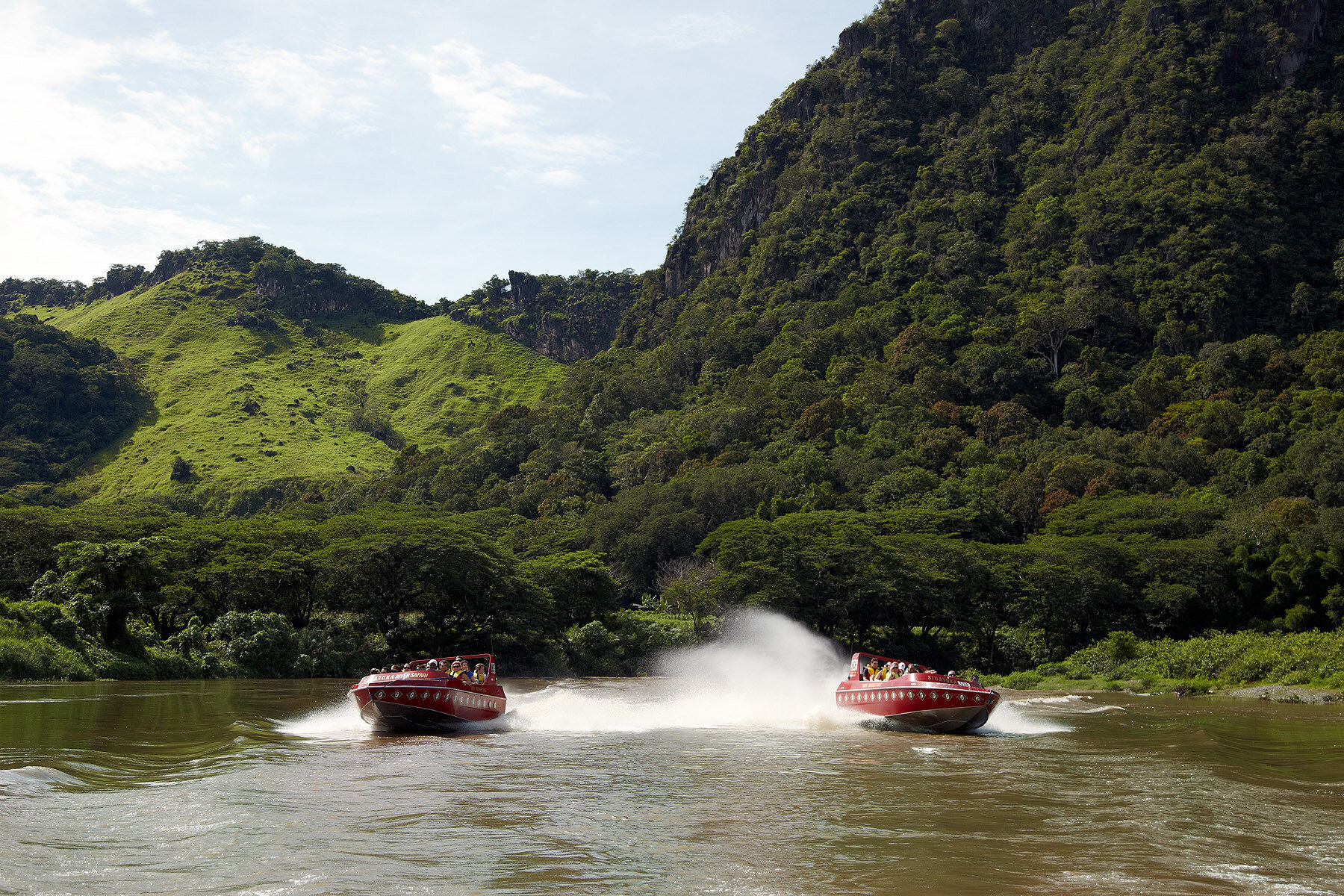 The mini-coach driver will pick you up from your resort and transfer you to the base in Sigatoka town. From there enjoy a 17km scenic cruise into the Sigatoka valley, discovering the fertile area known as the “salad bowl”of Fiji. Arrive at the departure point surrounded by Fijian natural beauty, here you are provided with your life jackets and safety briefing by your jet boat captain and then it’s time to board. As you begin your journey up the awe inspiring river you will hear about the history of the region, including its cannibal past! Children from the many villages that line the river wave as the boat cruises past and the water is so clear you will be able to see fish and rocks lining the river bottom. When you reach your village destination, you are given a warm welcome by the villagers. Sigatoka River Safari is careful to visit a different village every day, to minimise the impact of tourism on the village lifestyle in this remote part of the world. You will then visit the village Chief’s bure (house) or community hall and take part in a kava ceremony, before a tour of the village and a traditional Fijian lunch, including wonderful fresh tropical fruit. Your village visit ends with traditional Fijian singing and dancing and it’s time to board your jet boat again for the return trip.