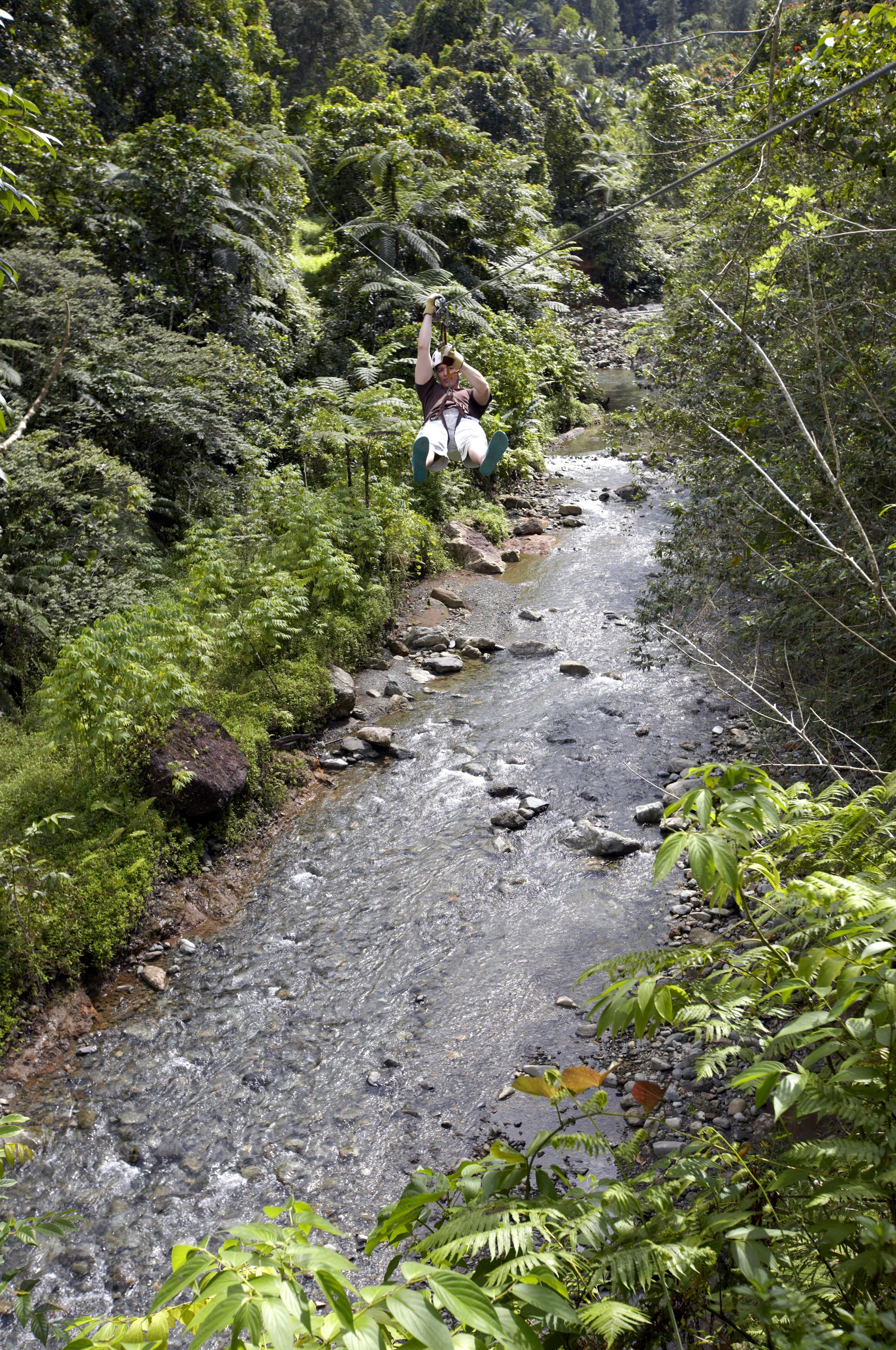 The Ziplines span over 1km with 7 zips, ranging from 80m to 160m and flying at speeds up to 40km/ph. Guests safety is top most priority –the harness has a lifetime rating of 10 years and roller trolleys are rated 5500lb per trolley and these are all regularly checked. To put it into context, the ziplines can take up to 250 kgs as a weight limit. The well trained and certified team are there to ensure you are safe on your flying adventure.