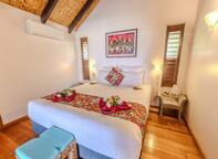 The Garden View Bungalows at Tamanu Beach Resort are all within a stones throw of the beach. Renovations were completed in May 2017 featuring some recent finishing touches of original Tim Buchanan Artwork. The Bungalows boast a brand new layout, Kwila hardwood floors, Tamanu (local Mahogany) Vanity benches, new bathrooms with an additional spacious outside shower. Each Bungalow with their lagoon-views from your balcony and daybed provide a perfect setting to relax. The free standing bungalows have been arranged to resemble a small Aitutaki village. Your bungalow has a bar fridge, tea & coffee facilities, LED TV, air conditioning, ceiling fans, hairdryer, safe and IDD telephone and room service is available on request. Its just a short walk along the beach to our beachside restaurant. The Garden bungalows are spacious and well appointed with Polynesian style decor, available in two configurations with a super king bed or two single king beds for twin share accommodation.