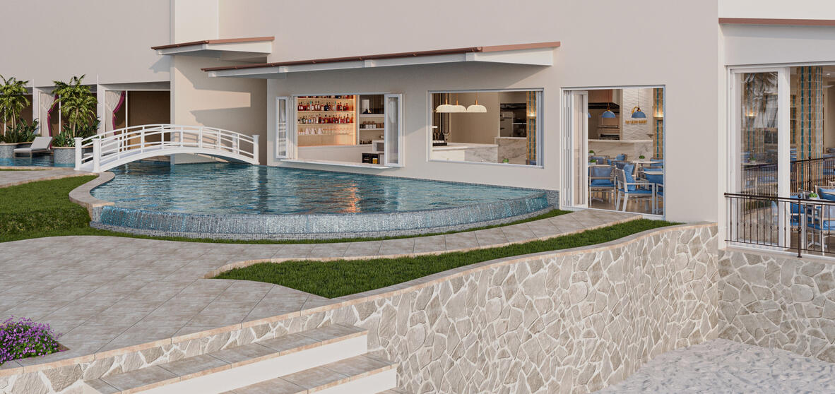 Step directly from your private terrace into the sparkling Grand Canal Pool, swim across for a cocktail at the swim-up bar, and drift effortlessly back to your luxurious retreat. This 46 sqm suite features a king bed and sleeper sofa, offering the perfect blend of comfort, style, and exclusive poolside access.