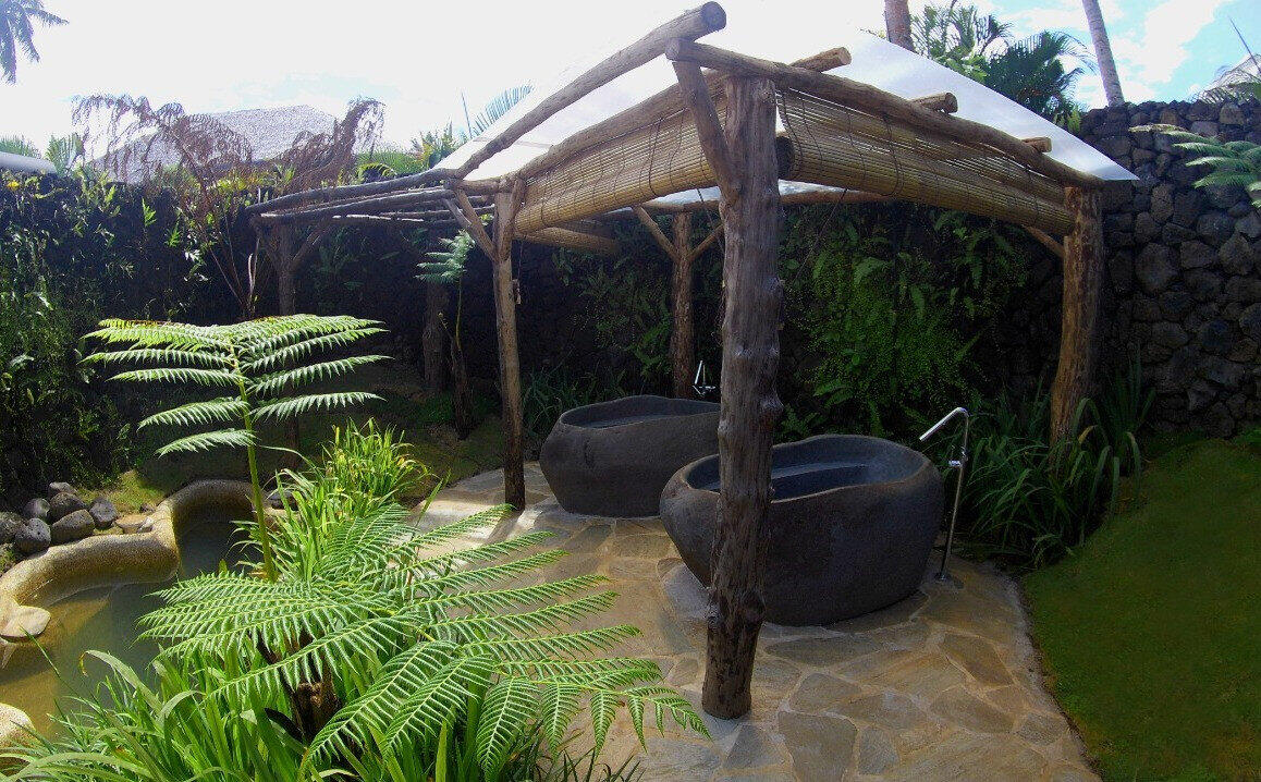 Located directly on a sandy beach, just meters from the water’s edge, these accommodations feature unique open air bathrooms with lava-rock walls and a sunken shower nestled under a private “waterfall”. Finishing touches include thatched roofs, covered terraces facing the sea and island decor. The Beach Fales have one bedroom, one bathroom, and feature a split-level design with a separate sitting room. There are 4 fales.