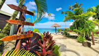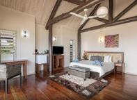 Located just a few steps from a golden sandy beach and turquoise lagoon, nestled within a sheltered bay, where you can hear the sound of the waves crashing on the distant reef. Your stand-alone spacious Villa with panoramic lagoon views is fully furnished with quality locally made furnishings, an artfully designed layout and your utmost comfort in mind. Rooms feature air-conditioning, ceiling fan, private indoor and outdoor showers, double vanity bathroom, IDD telephone, TV with DVD player, in-room safe, hairdryer, bathrooms, iron & ironing board (on request), tea & coffee making facilities, fridge and mini-bar on request.