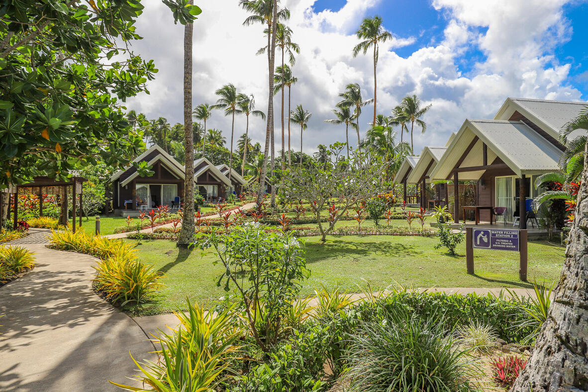 Relax in your private spacious Villa and enjoy Fa’a Samoa, where outdoor living and quality family time is integral to the daily life, with a separate bedroom partitioned for privacy. Relax outdoors on your spacious deck, surrounded by tropical gardens and not far to the main swimming pool. Tastefully furnished with modern amenities, you'll find everything you need to relax and enjoy your family holiday in paradise. Room features air-conditioning, ceiling fan, large deck, private indoor & outdoor showers, double vanity bath-room, IDD telephone, TV with DVD player, in-room safe, hairdryer, iron & ironing, board (on request), tea & coffee making facilitie, fridge and mini-bar on request. NOTE: Two of the Villas are wheelchair accessible (on request).