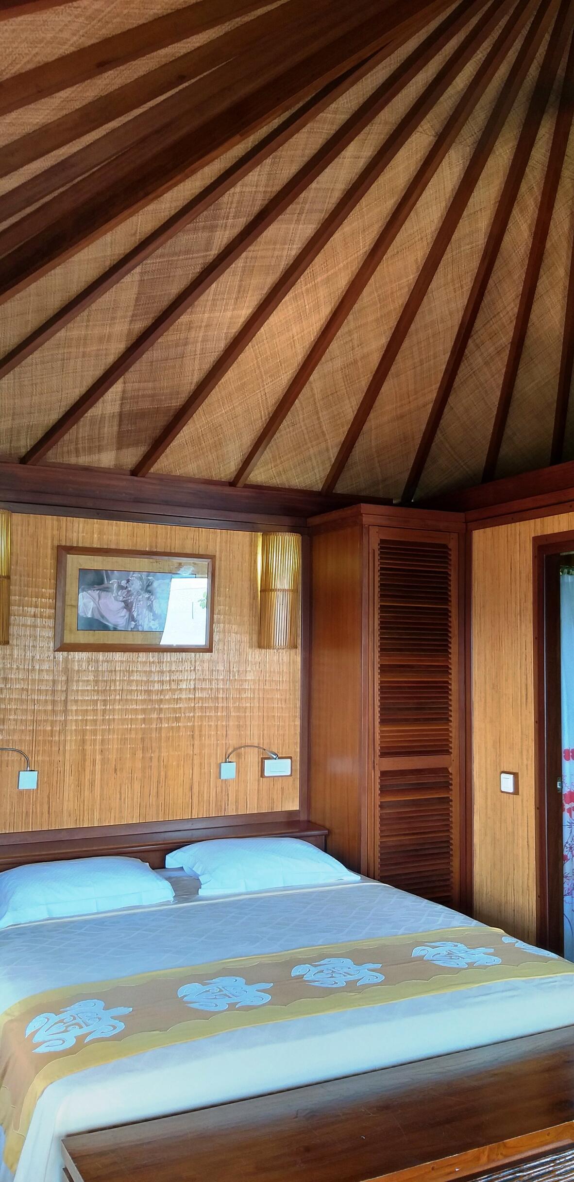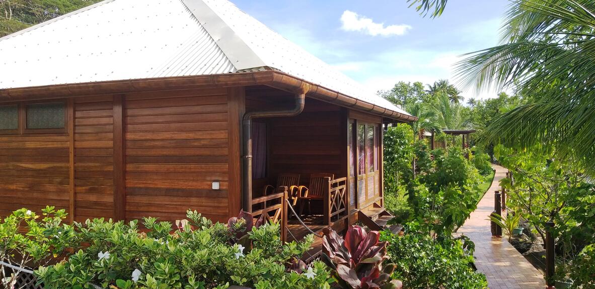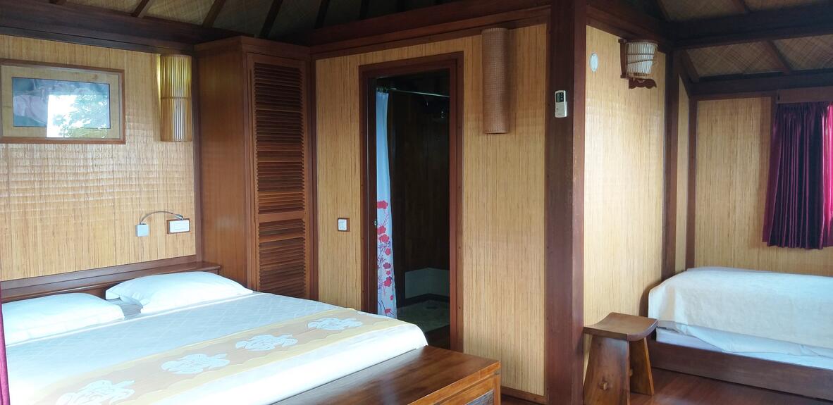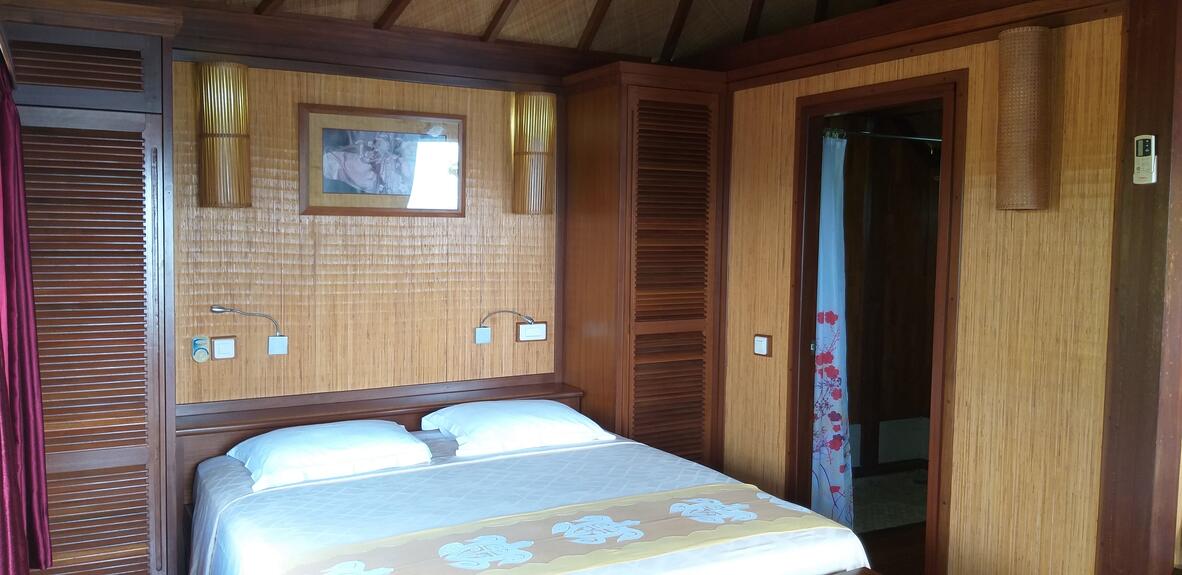 These stand alone Fare's are designed in wood and stone. They are air conditioned, offer a King size bed, shower and balcony.